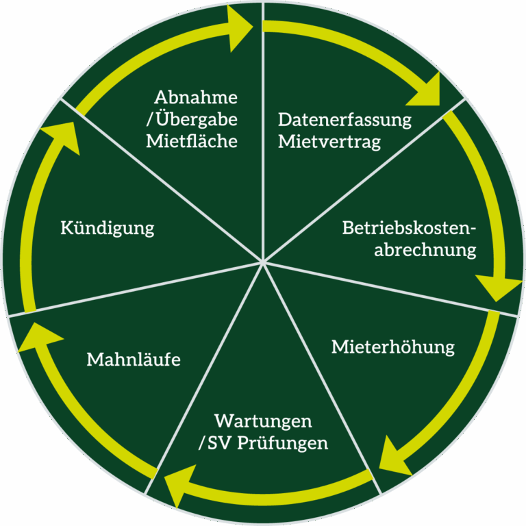 Unsere Kernaufgaben ergeben sich für uns aus den einzelnen Phasen eines Mietvertrage: